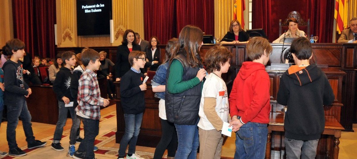 Todos los escaños de la sala de Plenos del Parlament balear han sido ocupados por niños y niñas de 2º y 5º de Educación Primaria de dos colegios de Palma -Jesús María y Lluís Vives-, que han simulado la celebración de una sesión plenaria con motivo de la conclusión de la XVI edición del programa educativo desarrollado por la asociación Aldeas Infantiles SOS de España, que este año se ha centrado en el valor de la familia.