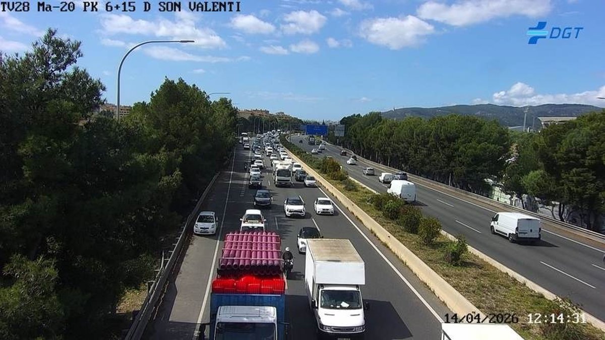El atasco se extiende hasta el kilómetro ocho, a la altura de Son Rapinya.