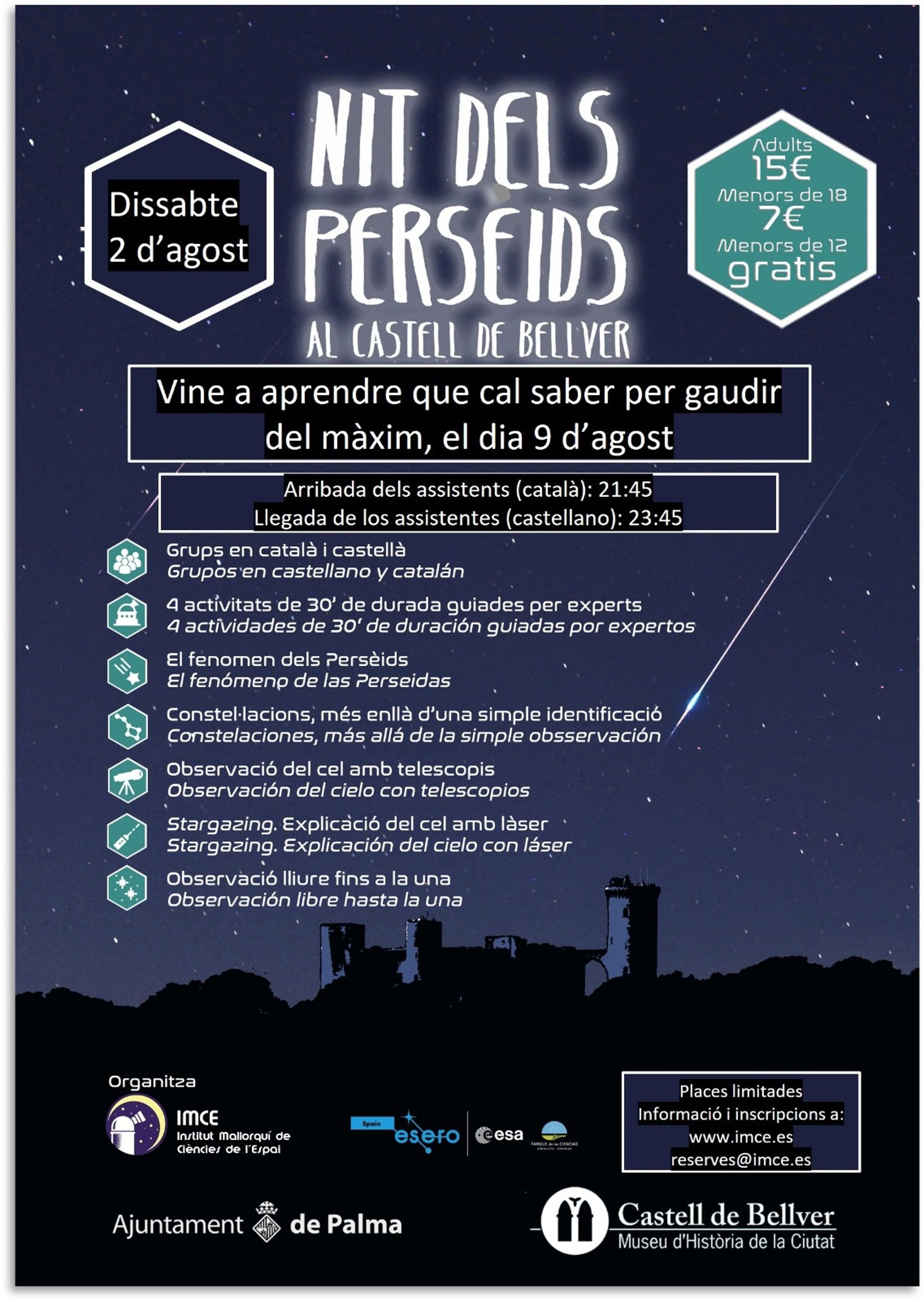 El objetivo de la jornada, que cuenta con la colaboración del Ayuntamiento de Palma, es que todos los participantes tengan la información necesaria para disfrutar de la observación de las también conocidas como 'lágrimas de San Lorenzo' con las máximas garantías.