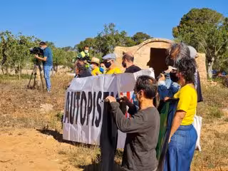 Los activistas han hecho coincidir la protesta con el acto programado por las autoridades, a las 09.30 horas en la carretera. Así, han recibido con esta acción a la presidenta del Consell de Mallorca, Catalina Cladera, que iba acompañada de los alcaldes de Campos (Francisca Porquer), Llucmajor (Éric Jareño) y Santanyí (Maria Pons), así como el primer teniente de alcalde de Ses Salines, Miquel Rigo.
