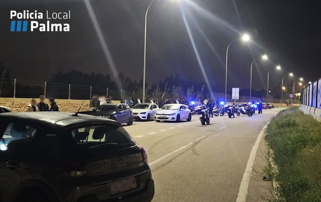 La Policía Local de Palma ha disuelto un masivo botellón, con gran presencia de jóvenes, muchos de ellos menores, y carreras ilegales de motos y coches en el camino de Son Roca.