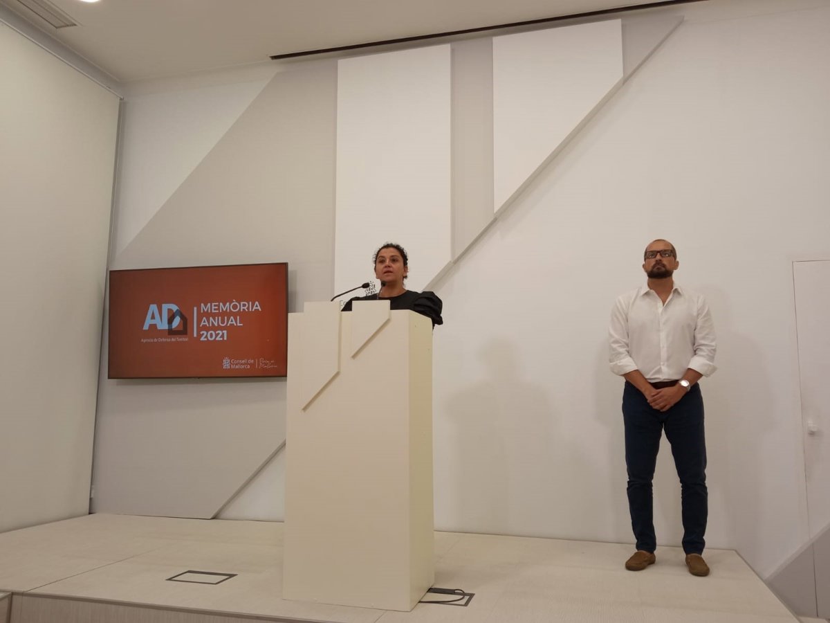 La consellera insular de Territorio, Maria Antnia Garcias, y el gerente de la ADT, Tomeu Tugores, en rueda de prensa. - EUROPA PRESS