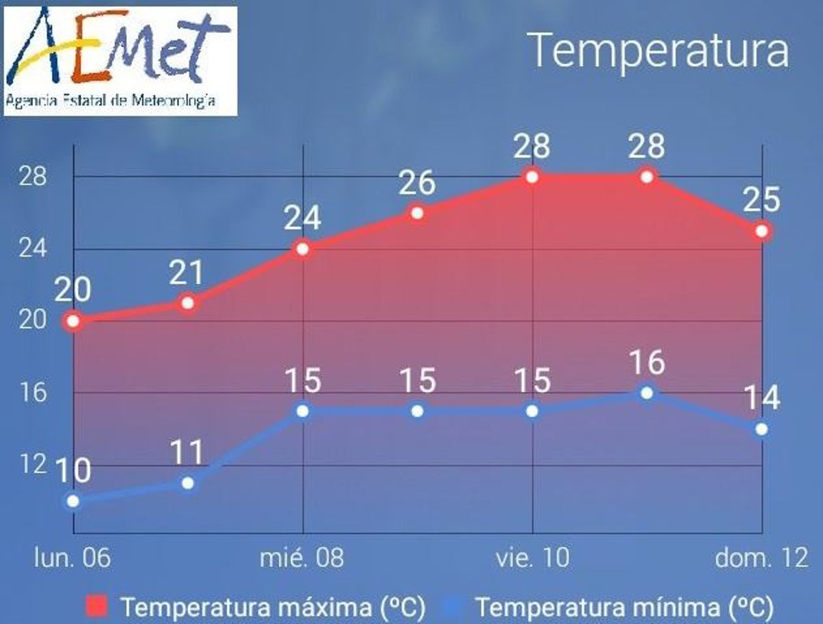 Según ha informado la AEMET en su cuenta de Twitter, será entre el viernes 10 de mayo y el domingo 12, y, asimismo, se ha indicado que el mar se encuentra a unos 18C de temperatura.