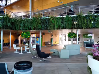 En uno de ellos se han instalado sofás, butacas y mesas con iluminación de techo y lámparas de mesa; y en el otro, con vistas a la plataforma de aeronaves, seis butacas con puntos de luz para la lectura.