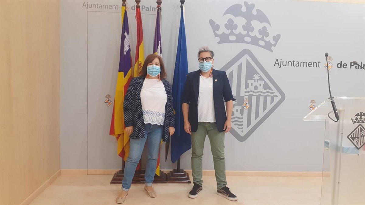 La regidora de Justicia Social, Feminismo y LGTBI, Sonia Vivas, y la coordinadora de Seguridad Ciudadana, Joana Adillón, durante la presentación del protocolo para la integración policial de personas trans. - AYUNTAMIENTO DE PALMA