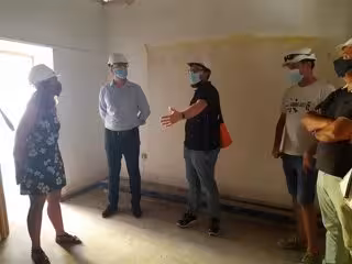 El alcalde de Palma, José Hila, y la concejala de Modelo de Ciudad, Vivienda Digna y Sostenibilidad, Neus Truyol, han visitado este lunes las obras de rehabilitación que se están llevando a cabo en los edificios de la calle Aragón y que son propiedad del Patronato Municipal de la Vivienda.