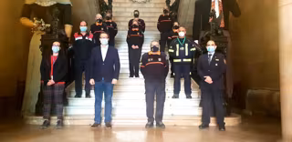 El alcalde de Palma, Jose Hila, junto a la regidora de Seguridad Ciudadana y primera teniente de alcalde, Joana Adrover, ha saludado este martes a la nueva cúpula de Protección Civil y a algunos de sus voluntarios en un acto que ha tenido lugar en el Ayuntamiento.