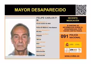 El Centro Nacional de Personas Desaparecidas (CNDES) ha alertado de la desaparición en Palma de un hombre de 66 años que necesita medicación.
