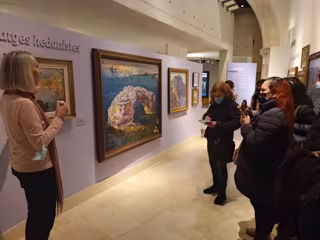 Usuarios de los talleres de catalán del Casal de Asociaciones de Inmigrantes y ONGD han participado en visitas guiadas a la exposición 'Viaje y paisaje. De Latinoamérica en Mallorca'.