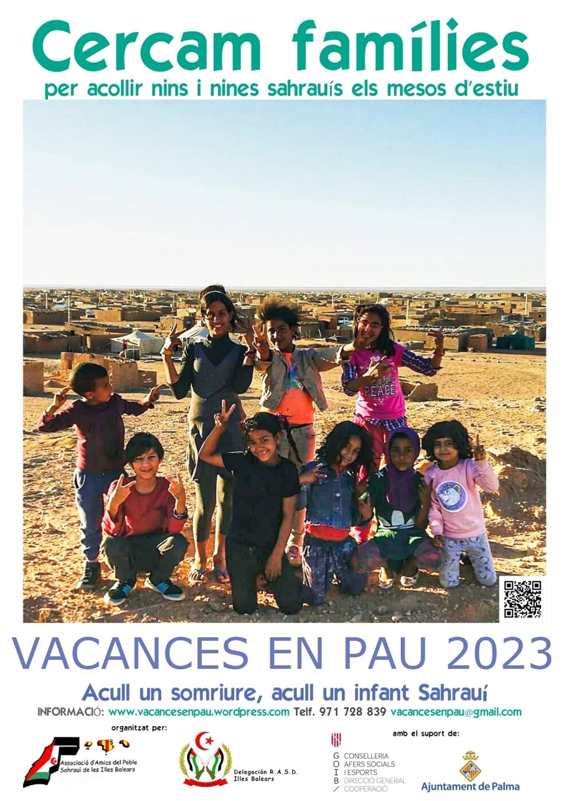 La asociación Amics del Poble Sahrauí busca familias para acoger en Baleares a niños saharauis de los campamentos de refugiados de Tindouf (Argelia) durante julio y agosto de 2023, dentro del programa 'Vacances en Pau'.