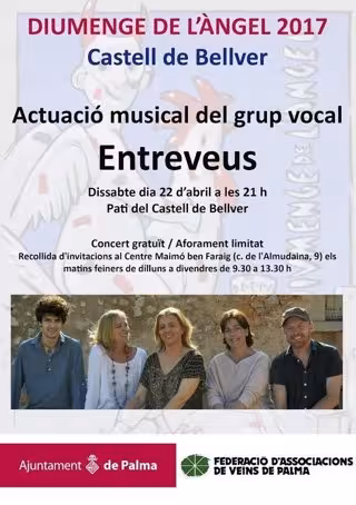 El patio del Castillo de Bellver acogerá este sábado a partir de las 21.00 horas el concierto gratuito del trío vocal femenino Entreveus, como preludio del Diumenge del Àngel.
