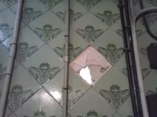Según han informado en un comunicado, las obras del local comercial anexo han provocado el desprendimiento de una baldosa del vestíbulo de dicho inmueble, obra de la ilustre fábrica de la Roqueta (1997-1918).