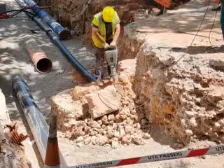 Imagen de las obras en la plaza de España con las que ARCA denuncia la afección en los restos de la muralla. - ARCA