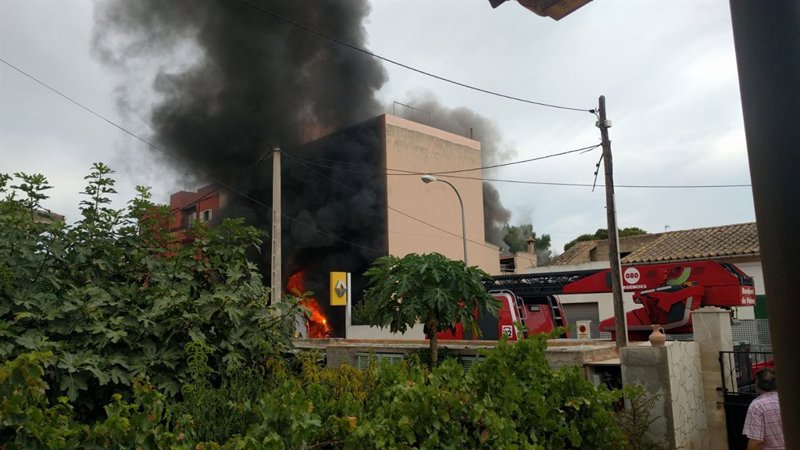 Los Bomberos de Palma están actuando en estos momentos en la extinción de un incendio declarado en un taller mecánico de Son Ferriol.