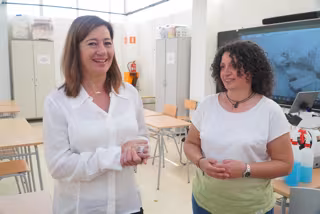 La presidenta del Govern, Francina Armengol, acompañada del conseller de Educación y Formación Profesional, Martí March, ha visitado el aula de tecnología aplicada (Ateca) que se ha puesto en marcha este curso en el IES Algarb de Sant Josep.