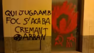 La organización juvenil de Esquerra Independentista, Arran Palma, ha criticado la actuación del PP en el incendio de Andratx con una pintada en la sede de la formación de Palma, en la que se puede leer "Quien juega con fuego, se acaba quemando".
