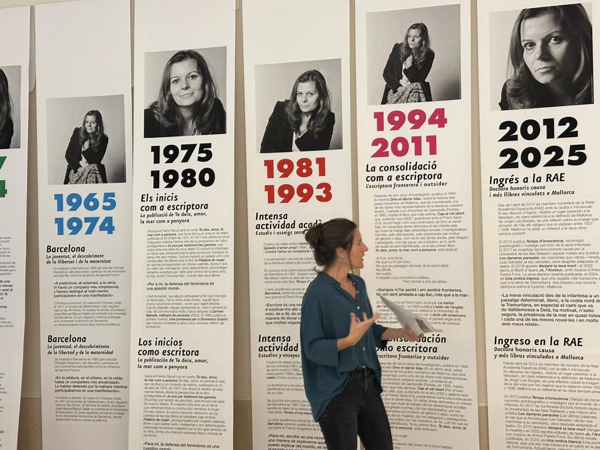 El Institut d'Estudis Baleàrics (IEB) ha dado arranque este jueves a las visitas guiadas a la exposición 'Carme Riera, l'amor, la mar' organizada con motivo del 50 aniversario de la publicación de la obra 'Te deix, amor, la mar com a penyora' de la autora mallorquina.