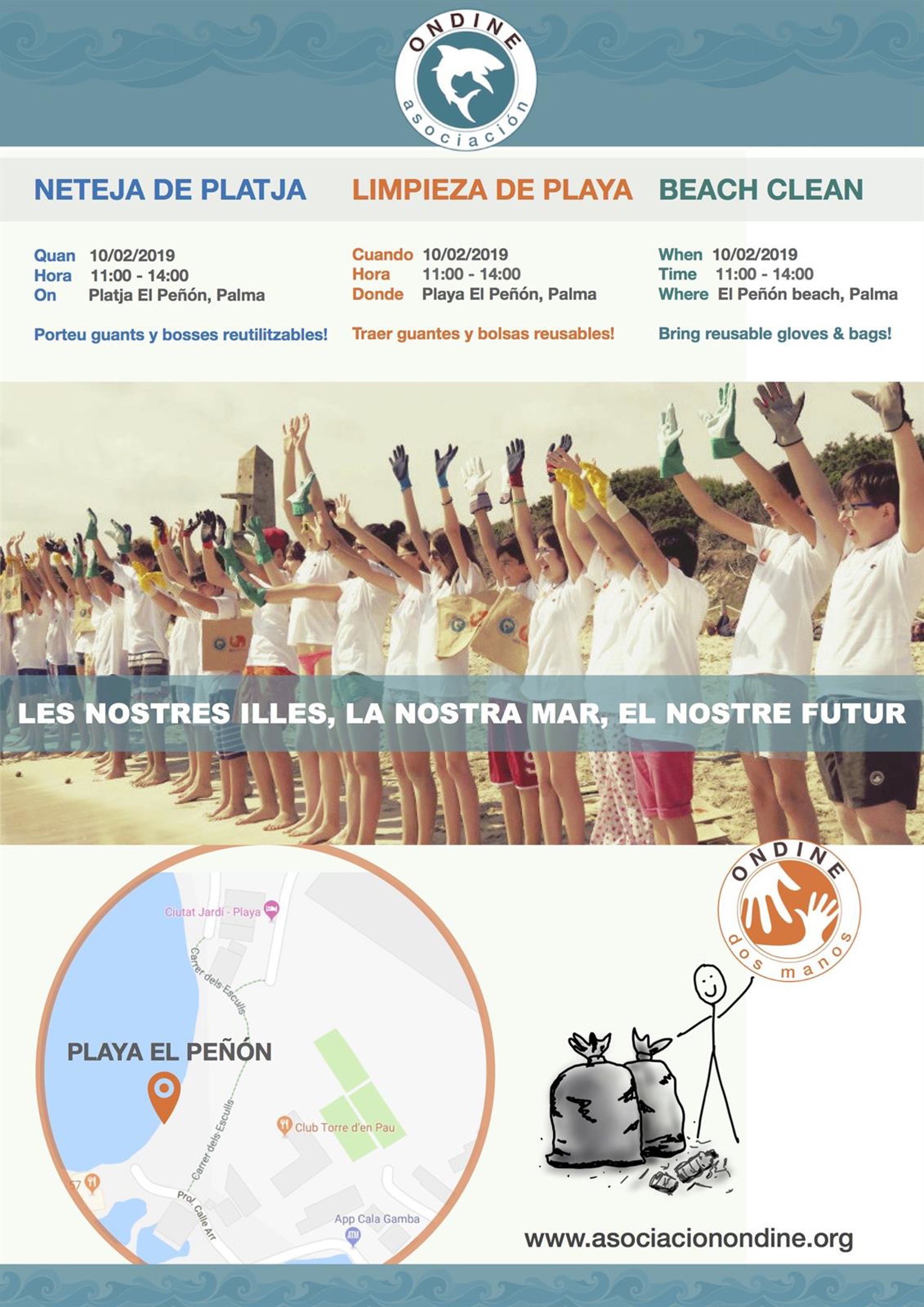 La asociación Ondine ha convocado para este domingo la acción 'Limpieza de Playa' en la playa de El Peñón de Palma para "tomar conciencia" de los usos "desmesurados" de plástico y de la "magnitud del problema".