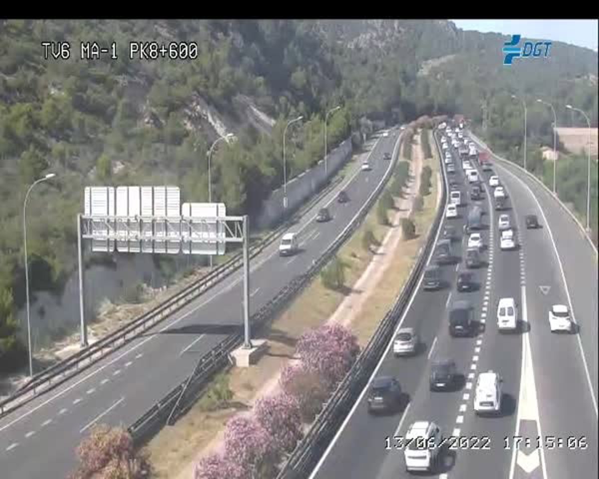 La autopista de Andratx (Ma-1) registra desde primera hora de esta tarde varios kilómetros de retenciones desde el enlace de la Vía de Cintura y el acceso a Palma.