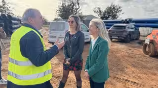 La alcaldesa de Santa Eulària des Riu, Carmen Ferrer, y el gerente de la Agencia Balear del Agua y la Calidad Ambiental (Abaqua), Emeterio Moles, han visitado las obras de renovación del tramo de la conducción de agua desalada del ramal este de la interconexión de Ibiza.
