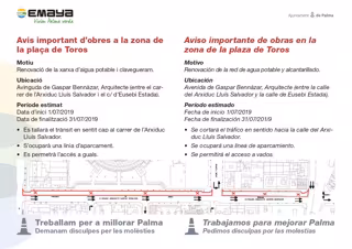 Emaya ha informado del cierre, a partir de este lunes, de la avenida Gaspar Bennzar Arquitecto a la altura de las calles Eusebi Estada y Arxiduc Lluís Salvador por obras de renovación en la red de agua potable, unos trabajos que mantendrán cerrada la avenida hasta el 31 de julio.