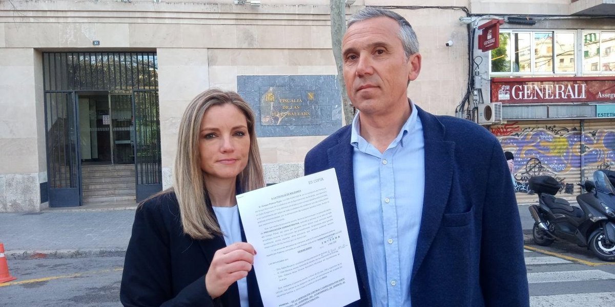Patricia Guasp, portavoz adjunta de Cs en el Parlament balear, y el regidor de Cs en Andratx, Gaspar Palmer, presentan la denuncia ante Fiscalía. - CS