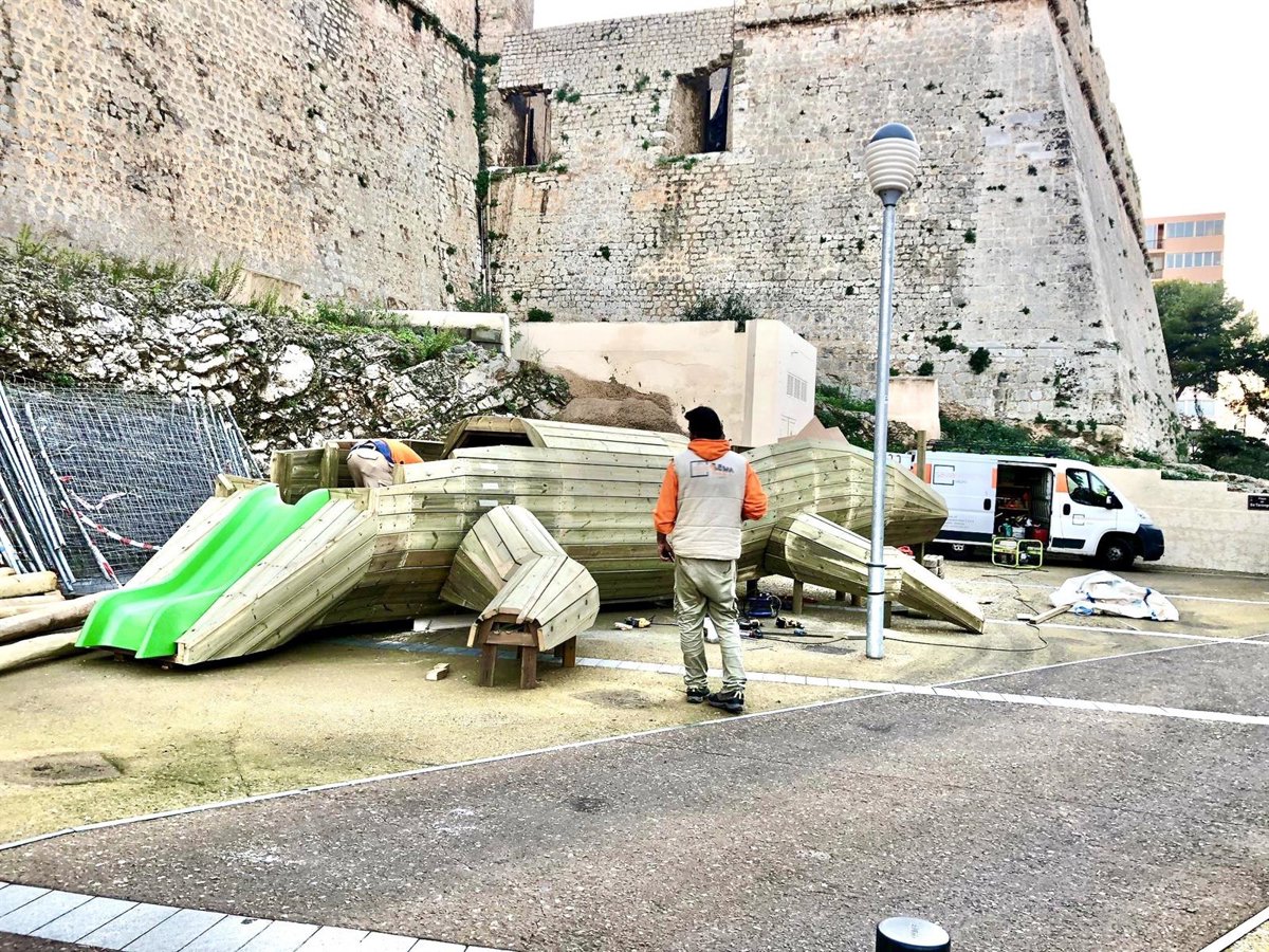 El Ayuntamiento de Ibiza ha iniciado la instalación del elemento principal del nuevo espacio de ocio infantil en la plaza de Sa Tarongeta.