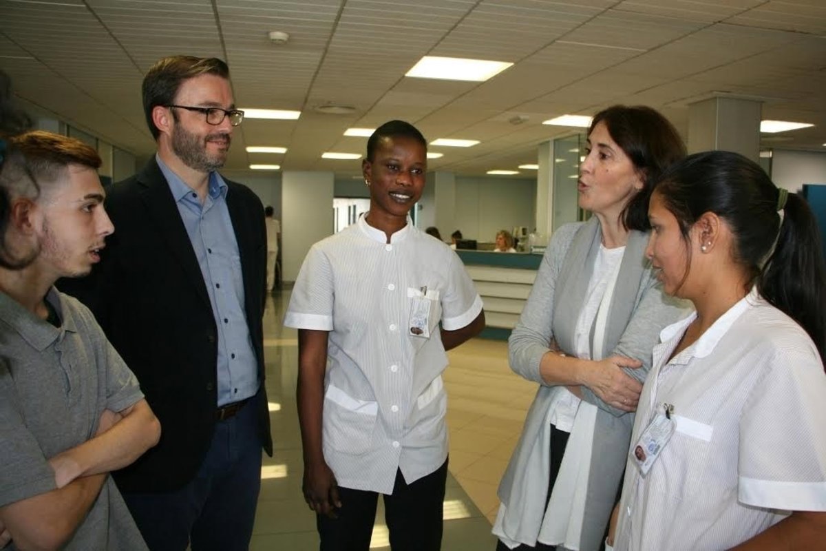 El alcalde de Palma, José Hila, ha conocido este jueves de primera mano las prácticas profesionales no laborales que están haciendo los alumnos de PalmaActiva, en concreto, en la Clínica Juaneda para obtener el certificado de profesionalidad de Limpieza.