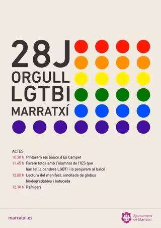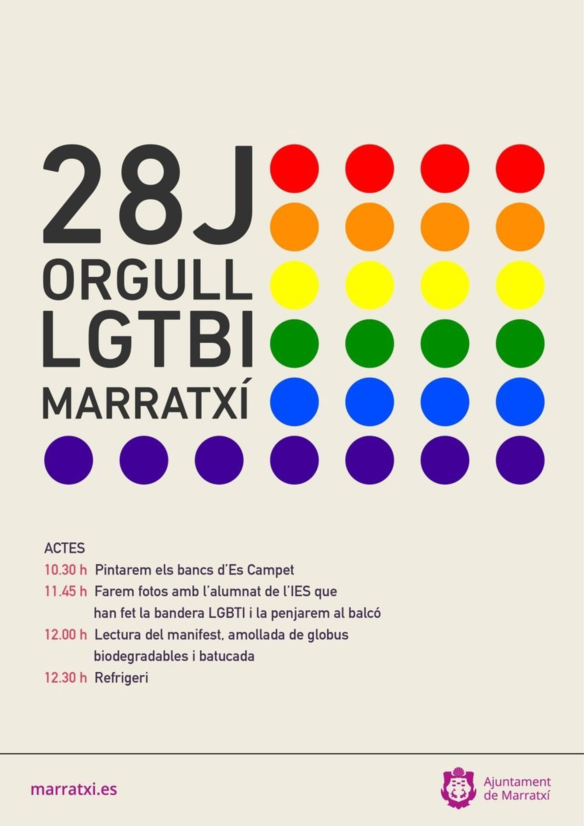 Posteriormente, a las 11.45 horas los alumnos del IES de Marratxí se realizarán fotos con la bandera LGTBI que han realizado y, acto seguido, se colgará del balcón.