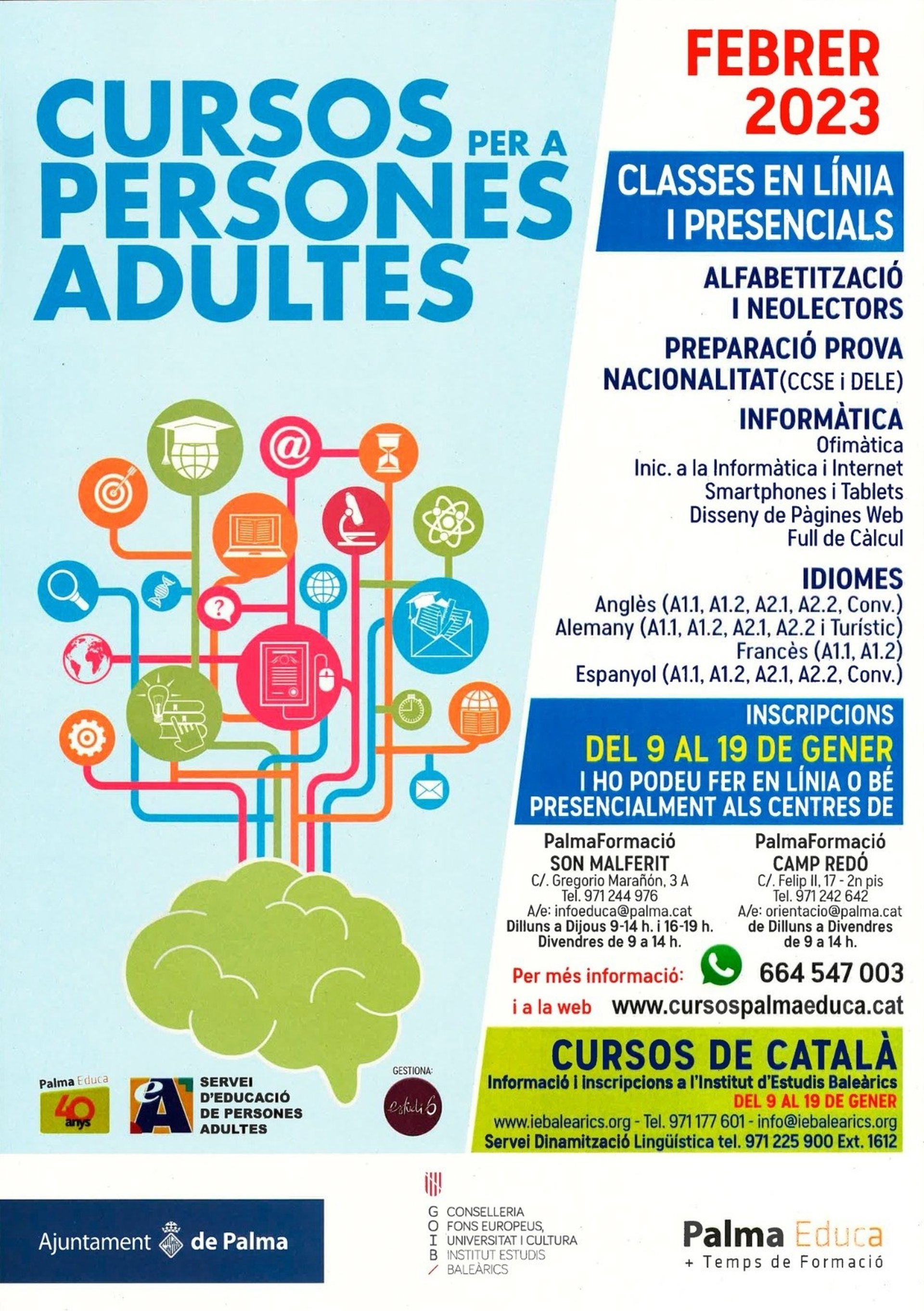 Cartel de los cursos para personas adultas del Ayuntamiento de Palma. - CORT