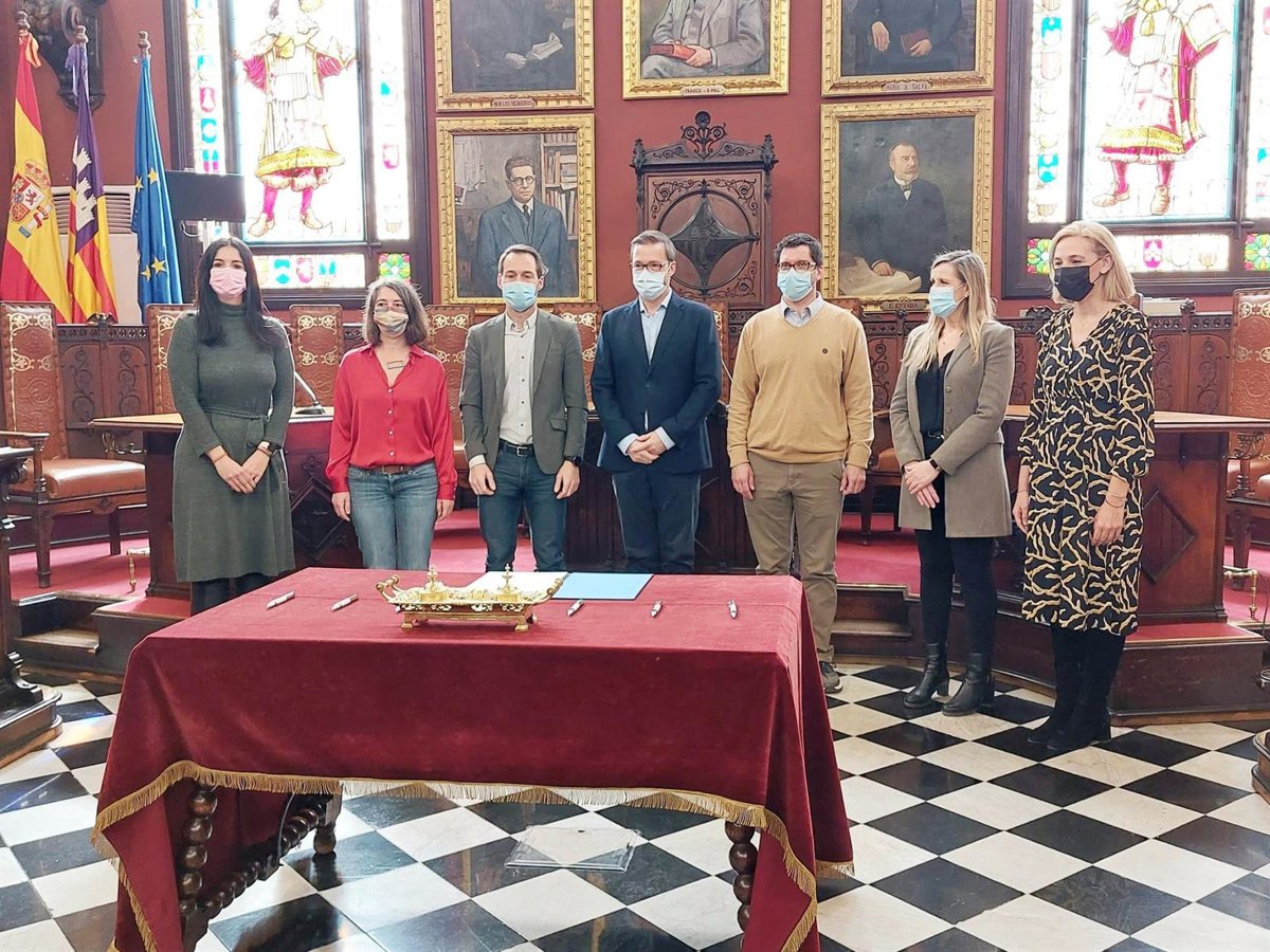 El documento institucional ha sido firmado por el alcalde de Palma, José Hila; Francisco Ducrós, en representación del Grupo Municipal PSIB; Rodrigo A. Romero, en representación del Grupo Municipal Unidas Podemos; Neus Truyol, en representación del Grupo Municipal MÉS Estimam Palma; Lydia Pérez, en representación del Grupo Municipal PP; Sandra Barceló, en representación del Grupo Municipal Vox Actúa Palma; y Eva María Pomar, en representación del Grupo Municipal Cs.