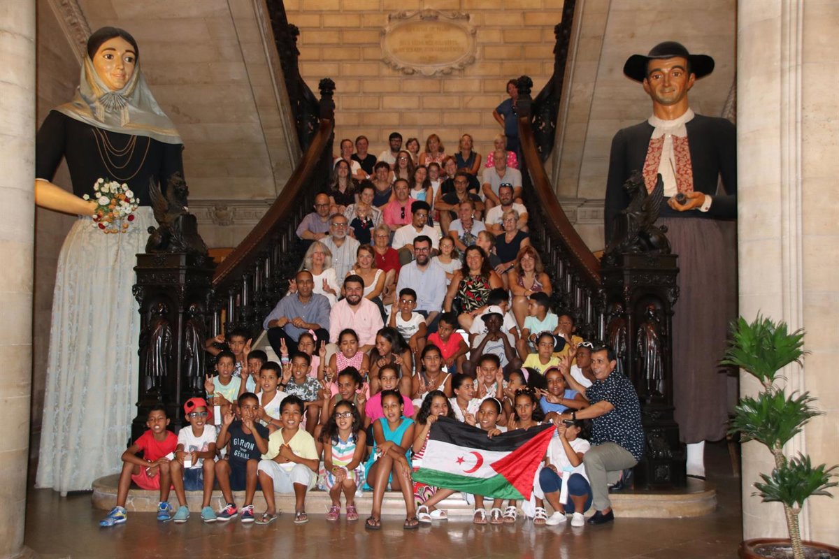 El alcalde de Palma, Antoni Noguera, y el presidente del Consell de Mallorca, Miquel Ensenyat, han recibido este martes a los niós del pueblo saharaui que participan en la edición de 'Vacances en Pau' de este año.