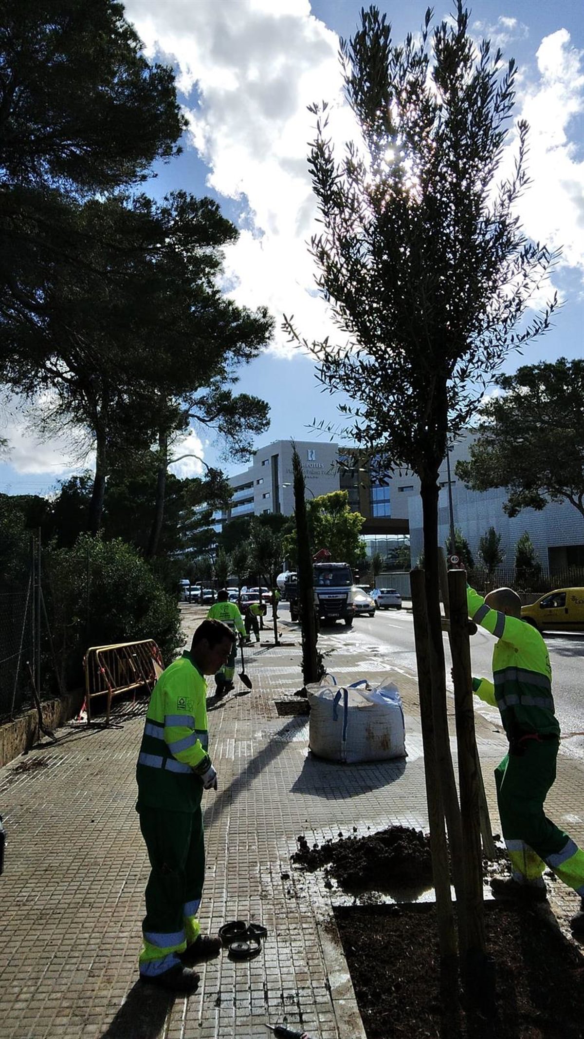 El área de Infraestructuras y Accesibilidad del Ayuntamiento de Palma está sembrando entre este miércoles y jueves 54 ejemplares de la especie 'Olivera ciperina' en la avenida Fra Joan Llabrés situada en el barrio de Les Maravelles.