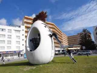 El 'Huevo' es propiedad municipal desde 1992, cuando la Conselleria de Obras Públicas del Govern compró la estatua a los artistas Antonio Hormigo, Julio Bauzá y Luis Ojeda , para cederla al Ayuntamiento.