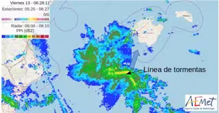 La Aemet también ha explicado que una línea de tormentas se ha organizado al sur de Mallorca y se dirige hacia la isla. Por lo que se prevén chubascos muy intensos con fuertes rachas de viento.