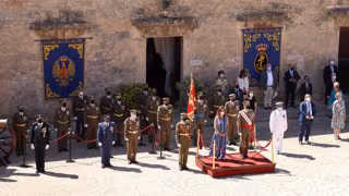 Durante el acto de la celebración del Día de las Fuerzas Armadas, se ha procedido a un izado de la Bandera Nacional y se ha efectuado un homenaje a los que dieron su vida por España, participando una unidad de honores reducida, en la que se ha integrado personal del Ejército de Tierra, Armada, Ejército del Aire y Guardia Civil, así como personal militar con uniforme de época --Infantería española de