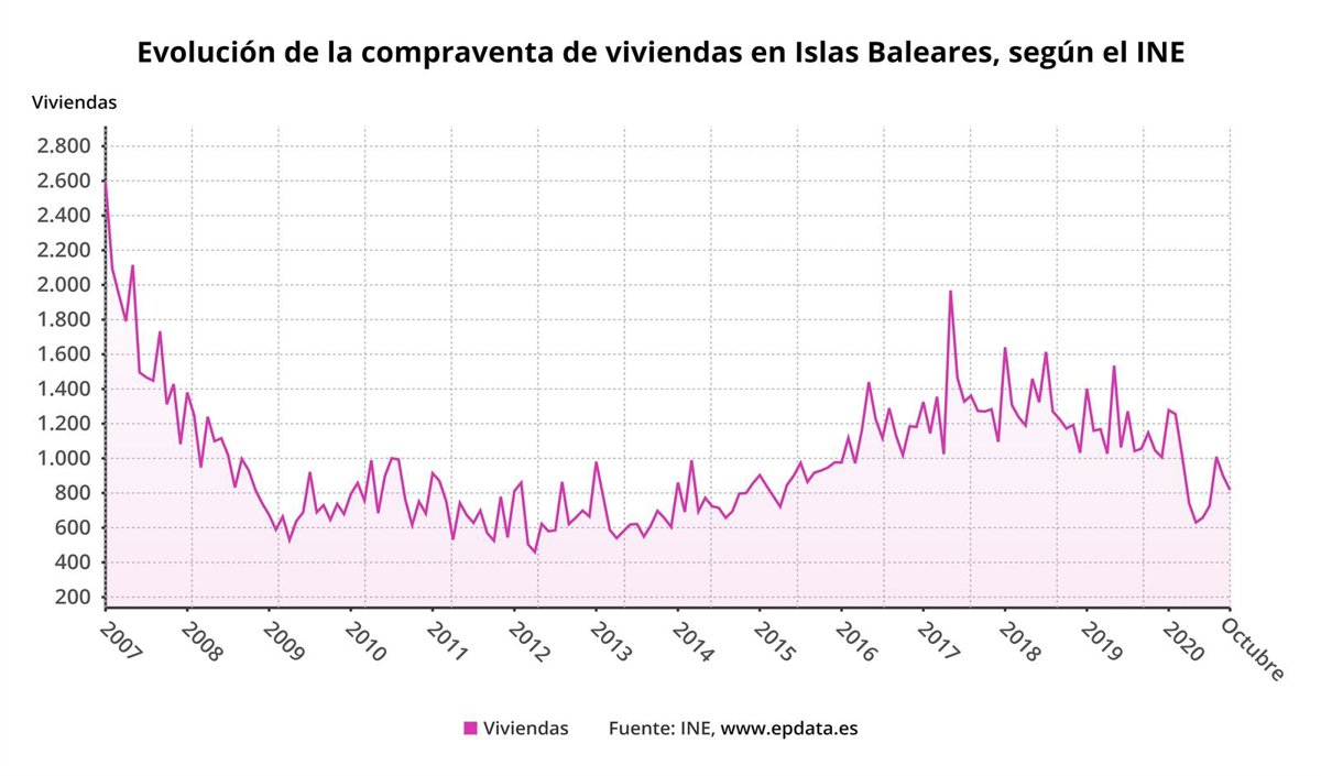 Evolución de la compraventa de viviendas en Baleares hasta octubre de 2020. - EPDATA
