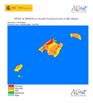 Baleares se encuentra en riesgo de incendio extremo o muy alto. - AEMET