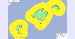 En Mallorca y Menorca, el aviso amarillo está activado por fenómenos costeros y en Ibiza y Formentera además de por fenómenos costeros también por rachas de viento fuerte.