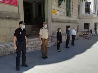 La Delegada del Gobierno en Baleares, Aina Calvo, ha encabezado a mediodía el acto en memoria de las víctimas por la pandemia, acompañada por el Comandante General de Baleares, Fernando García Blázquez; el Coronel Jefe de la Guardia Civil en Baleares, Alejandro Hernández; el Comisario Provincial de la Policía Nacional en Baleares, José Antonio Puebla, y el Secretario General de la Delegación del Gobierno en las islas, Ramon Morey.