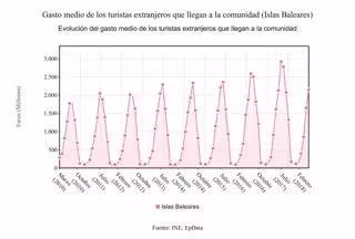 Gráfico de la evolución del gasto de los extranjeros en Baleares (Datos INE)