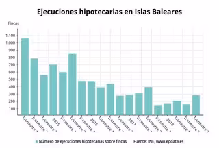 Baleares registró en el primer trimestre 287 ejecuciones hipotecarias sobre viviendas en el tercer trimestre de 2018, un 90,07% más que en el mismo periodo de 2017, según la estadística publicada este martes por el Instituto Nacional de Estadística (INE).