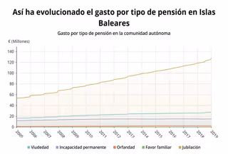 La cuantía media de las pensiones en Baleares ha registrado un incremento del 5,6 por ciento frente a un aumento nacional del 5,7 por ciento.