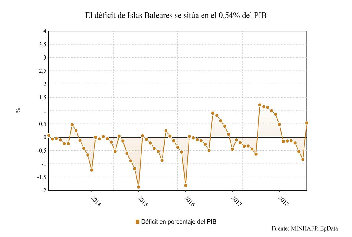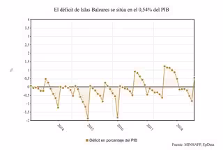 Baleares ha registrado un superávit de 167 millones de euros hasta julio, un 0,54 por ciento del PIB, frente a los 333 millones de euros registrados en el mismo mes del año anterior, con un 1,11 por ciento del PIB.