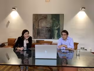 El conseller de Modelo Económico, Turismo y Trabajo, Iago Negueruela, y la directora general de Turismo Rosana Morillo, en su reunión con altos directivos de TUI. - CAIB