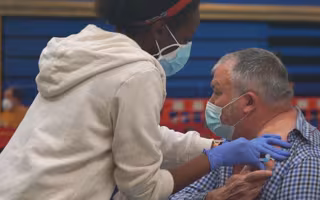 Archivo - Una trabajadora sanitaria administra a un hombre la vacuna contra la COVID-19 en el polideportivo Germans Escalas, en Palma. - CAIB - Archivo