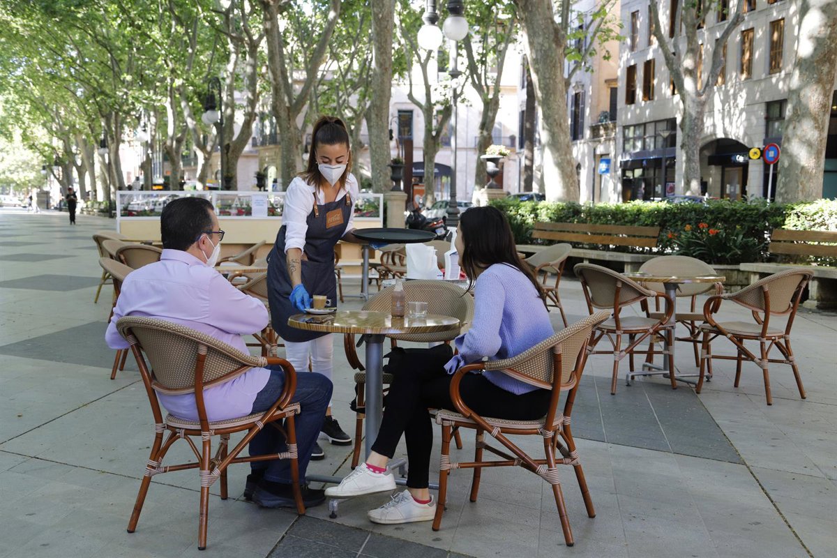 Una camarera sirve a dos clientes en una terraza del Paseo del Borne. - Clara Margais/dpa - Archivo