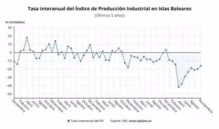 El índice de producción industrial encadena así once meses de descensos en Baleares, puesto que su último mes en positivo fue diciembre de 2019, cuando anotó un incremento del 3,2%.