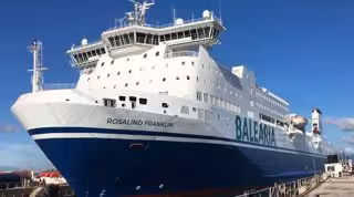 Baleària ha incorporado este jueves a su flota el ferry 'Rosalind Franklin' para realizar la conexión diaria entre Barcelona y Palma, con una capacidad de transporte en su bodega de hasta 3.100 metros lineales, lo que permite incrementar un 35 por ciento la capacidad de mercancías y vehículos.