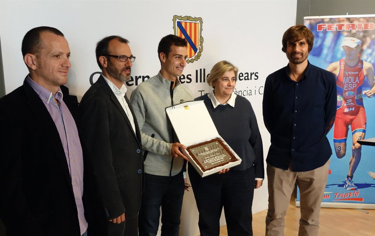 Mola, quien este año ha sido medalla de plata en el Campeonato del Mundo de Triatlón, ha sido recibido por la consellera de Participación, Transparencia y Cultura, Esperança Camps; el vicepresidente Barceló; el director general de Deportes y Juventud, Carles Gonyalons; y el presidente de la Federación Balear de Triatlón, Abilio García.